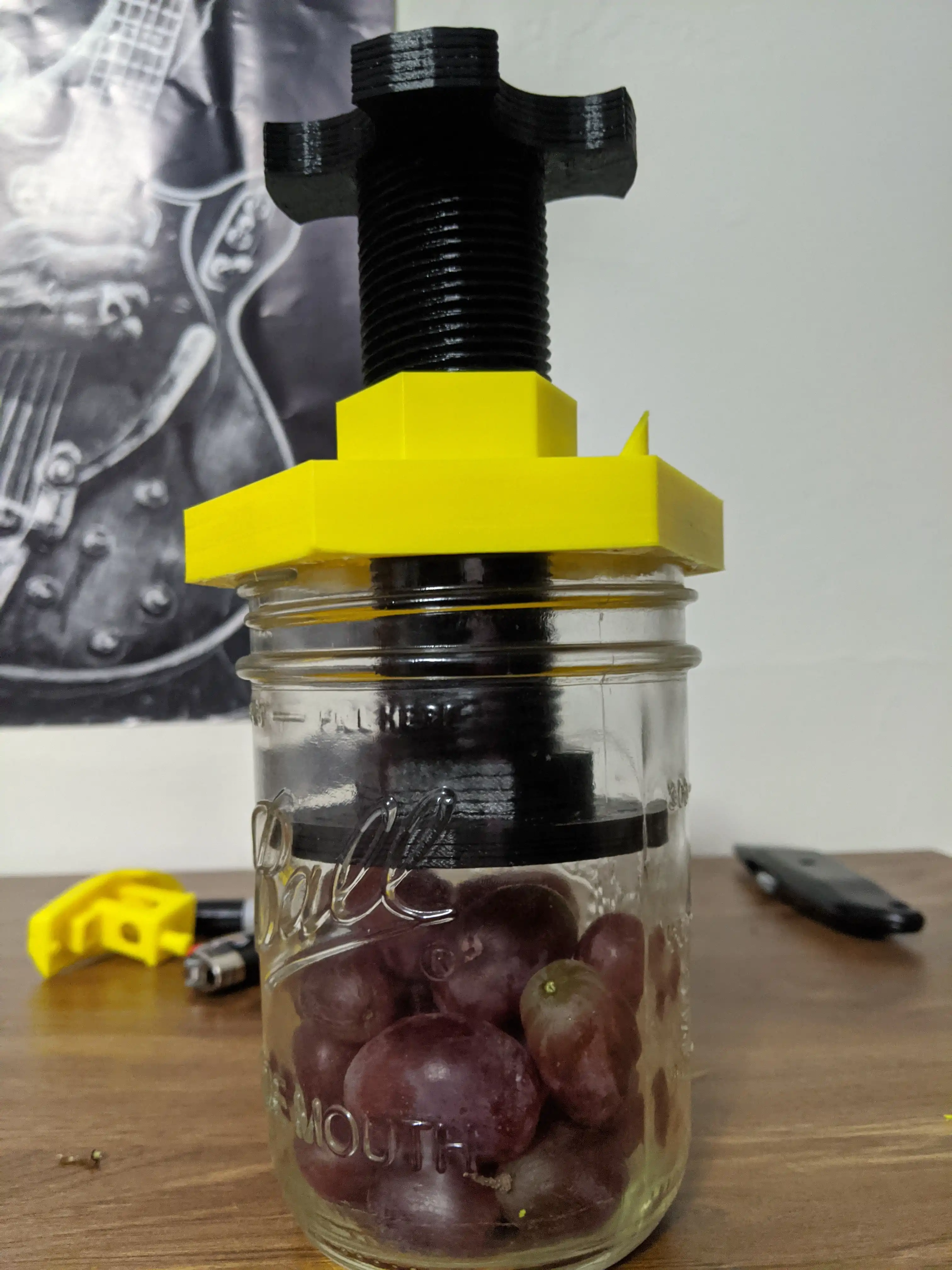 - The cider press as presented in this page is modeled to fit on a standard mason jar for demonstration purposes. The openSCAD files are parametric and allow for easy customization of the components.