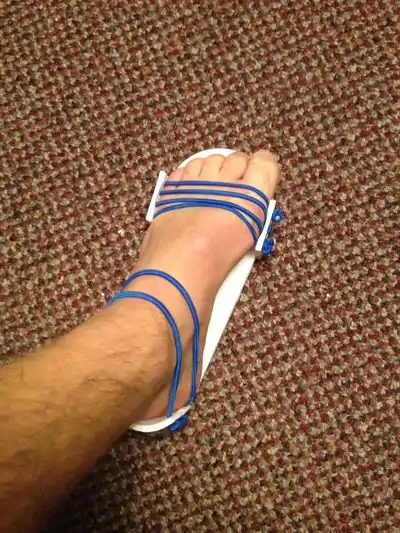 8. Once printed, 4 (5/32" Dia.) holes will need to drilled on each side of the strap supports and 4 (5/32" Dia.) in the ankle support (30 minutes total)