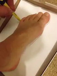 1. Place your bare foot on a piece of paper. Trace the outline of your foot on the paper.