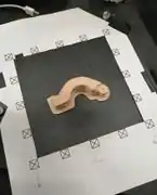 - Take a picture of the failed part on the bed (as high resolution as possible; black square X-markers should be visible in your picture; try to avoid significant light reflections)