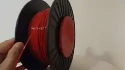 - Place the spool over the spool holder such that the top shaft-like part of the holder fits snugly to the inside of the spool reel and moves with the spool, not independently. The wider bottom plate on the holder prevents friction between the bottom of the holder and the wooden plank and enables smooth motion.