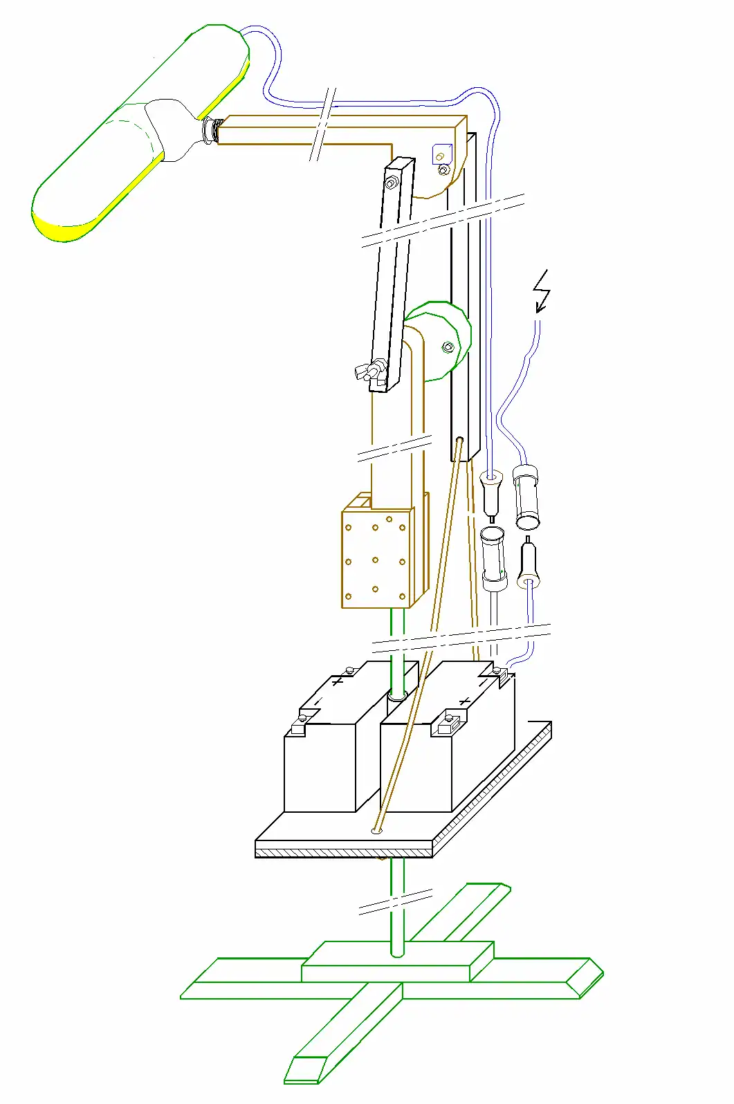 This is a more simple method to make a counter weight. You can use a brick in stead of the battery plank as weight. Very simple a brick with a drilled hole or Concrete with metal inside. Or two bricks in both sides of the bar.