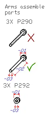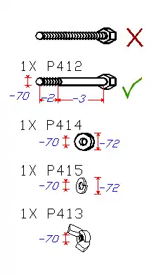| Part | Measure | Shape | length in mm (middle) | length in mm (large) |
