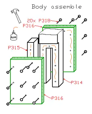 You can make the two big parts of the outer-arm, out of one peice of quality wood-multiplex.