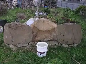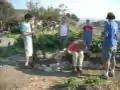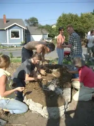 The first thing the cob bench group needed to do before they could build their bench was put down a foundation.