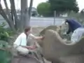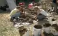 4. Drop test. A 2’ X 2’ sample of the cob is dropped from a height of 25 feet on to concrete to test its durability. An excellent case survives the drop with minimal cracking and retains its form, while a poor test breaks apart into fragments.