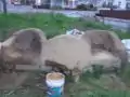 The Cob was mixed on the tarp and with bare feet (see fig. 15a). Occasionally two sides of the tarp were lifted together to bring the bottom sections of the mixture to the top so they could be mixed. After the sand and clay were thoroughly mixed together I added straw to the mixture. The batch was considered done once the mixture would fold into a burrito form when two sides of the tarp were lifted up. For one person this process took about an hour to complete.