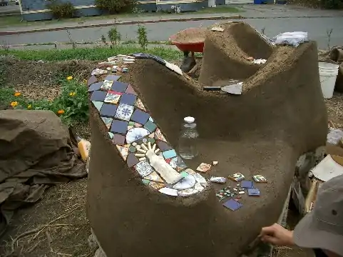 Natural building is rather simple, but it requires some time and effort. Patrick and his team had to assemble this cob bench from scratch, which required lots of time mixing cob and designing the dimensions and shape of the bench. This project also required them to make their own foundation in order to protect the bench from water.