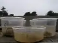 6. Soak Test: The samples of cob were completely immersed in water for a total of 15 minuets to test how well the cob mixture held together when soaked by water. A good test consists of a sample of cob that holds together when picked up out of the water, a bad test is one that dissolves in the water (see figs. 11a, 12a).