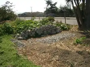 Built in the fall of 2003, this cob bench located at 4th and F St in Arcata, California, was completed by Humboldt State student Patrick McAuley. The cob bench was constructed in the garden of Arcata resident Lisa Jackson and is viewable from Samoa Blvd.