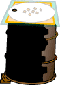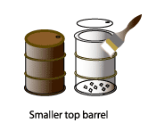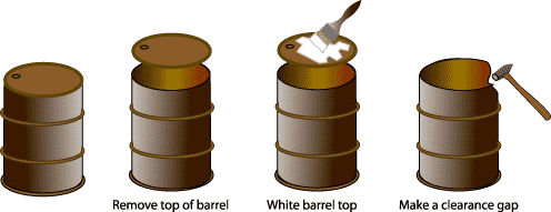 large drum/container white and black paint cutting tool glass/metal sheet wool sand or dirt fabric |