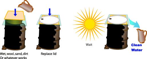 For anyone with clean water issues a solar condenser is a viable small scale potable water option.