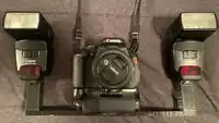Dual Flash Camera Mount | $135.99 Camera Flash Mount | This flash mount allows the user to mount two DSLR camera flashes to the 1/4-20 thread screws found on most cameras. The cost to print this was around 3$ plus a 0.25$ bolt that most people would have laying around the house. Also comes with a stand to hold the camera. 98% Savings. Youtube Link | |
