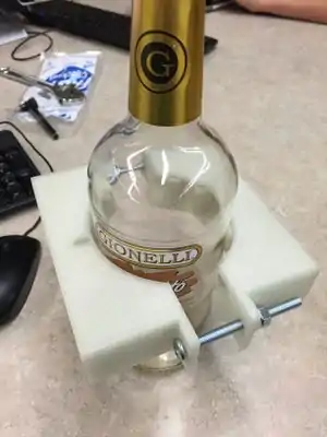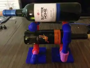 Bottle Holder | There is no commercial equivalent that I found, when researching I mostly found mounting types of holders, nothing freestanding and customizable. | This product is designed as completely parametric in OpenSCAD so the cost can widely vary. The design that I have shown here and in the video used about 16 grams of PLA costing around $0.27. [| Youtube Video] | |