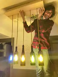 Wine Bottle Chandelier | $820 Commercial Wine Bottle Chandelier | It costs $53.16 to create the entire chandelier. That is a savings of $766.84 or about 94% with additional materials remaining to make another chandelier. | |