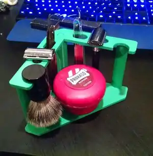 Extended Razor Stand By:Klbarie (talk) 23:19, 9 December 2015 (PST) | No commercial equivalent multi-razor stand exists. Some vendors make custom artisan stands, $60 | Cost of Extended Razor Stand: $3.40, Total Cost Savings: $56.60 |