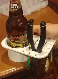 Beerholder on Libre3D & Can Holder on Thingiverse with FreeCAD file | Comparable Bottle Holder, $9.99 | 61 grams of PLA for about 1.65 resulting in cost savings of $8.34 |