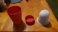 Ice Fishing Drink Holder | No commercial equivalent (perhaps a high quality thermos for $48) | This ice fishing drink holder features telescoping cylinders that immerse drinks within water through a hole in the ice, keeping them cold but preventing them from freezing while ice fishing. The top of the holder can be held against the ice via a weight, screws, or bolts. Cost: $12.12, Cost savings: $35.88 (versus the thermos). I have been offered $30 for this device, or a profit of $17.88 per device. | |