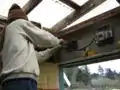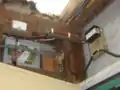 After assessing what components could be re-used from the old system and answering machine (Fig 1, 2, 3, 4), we got together to plan out the re-installation. Cody, being better at tough installation tasks, rebuilt the battery box (Fig 5), re-wired and attached the charge controller and inverter( Fig 7,8,and 9), and coached Bob as he re-wired the AC portion of the system. Bob ran Romex wiring from the inverter to the AC plug box. He also wired the AC outlet as it previously had direct DC wiring (Fig 4). Bob re-wired the compost fan to protect anyone from getting shocked if they fell asleep while on the toilet (Fig 13). We replaced all old wiring with new wiring and fastened with the existing hangers.