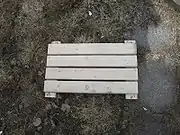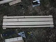- Construct the chamber bottom similar to the top. Connector locations are labelled in figure 7, and should line up with the side supports once assembled. The two skinner pieces on the sides can be made by ripping a 2x4 in half. The bottom piece of the prototype, shown in figure 8 does not include design changes to the structure.