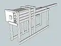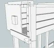 - There are two options to build the door. A door with a hinge can be installed but if hinges are not available try the option shown in the prototype. A section of the door support should be cut out to hold the door. If this second option is taken the top connector should be removed and a section cutout along the length of the door slot. Once cut these two pieces should be attached so they are flush against existing pieces allowing both the door to open and the bale to freely exit the chamber. The notches in these door support pieces should be cut with an appropriate tolerance so the door can slide a ¾’ notch was used for a ½” door. These cuts should be made by a saw, a chisel can be used to remove the material in betwen cuts. Scrap wood can be used as a door handle.