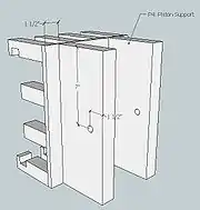 - Piston supports should be drilled prior to being attaching to the piston back. Like the blocks these should be attached from the back, after a pilot hole is drilled. Screws should be located in the large spaces in between blocks, to ease construction.