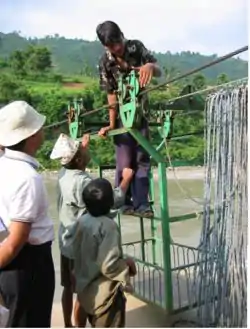Practical Action Nepal has conducted a study looking to improve the existing technology. Ideas for improving the design came form the local community during discussions with Practical Action technical experts. The community expressed concerns about the safety of traditional tuins. Many people have lost fingers while operating tuins, and there also is the danger of falling out of a trolley while crossing a river. Practical Action has come up with lowcost improvements that address users’ concerns.