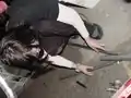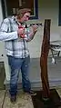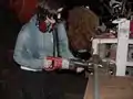 Drilling holes in the conduit using pedal power.