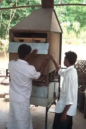 NOTE: The Practical Action South Asia dryer was initially introduced to a group of cashew processors who were mainly women. Upon the suggestions and comments of these women, the dryer was further modified to accommodate their needs. The present model -Anagi, is the product of their contribution and paid specific attention to the needs of women.