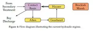 Water starts in the George-Allen marsh, then travels to the Robert Gearheart Marsh and finally to the Dan Hauser marsh; this process can take up to 9 days. Effluent from the Dan Hauser marsh is treated by chlorine a second time and is pumped into the bay.