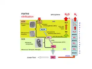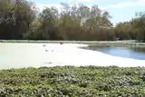 This water is treated in the enhancement ponds where biological processes remove the remaining pollutants before the water is released into the bay. Phosphorous can be removed by a chemical percipitation using one of three compounds: ferric chloride, aluminum or lime.[1] Nitrogen needs to be removed from the water in order to control the algae blooms. This can be done biologically or chemically. The nitrification-denitrificationprocess is used at the enhancement marshes.