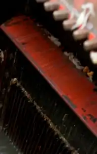 Grit is any large, generally inorganic, matter that is suspended in the influent. "grit is traditionally defined as particles larger than 0.21mm (0.008 in) (65 mesh) and with a specific gravity of greater than 2.65"[1]. Grit consists mostly of sand particles and glass particles that are small enough to have made their way through the bar racks. It is important that grit be settled out because it can be damaging to the mechanical components as well as hinder flow by building up in pipes. Since grit has a relatively quick settling time, it is settled out in a small basin that is contained within the head works. After being settled out grit is removed from the system and dried by a centrifugal dewatering system. This system works by spinning the grit laden sludge in a large cylinder where centrifugal force pushes only the solid sludge to the walls where it is scraped off[2].