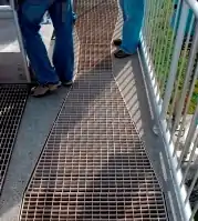 Flow coming into the Arcata marsh system is measured in a flow channel. The measurement works by constricting flow into a narrow channel which causes the water level to rise in the narrower portion. The channel can be viewed from above through the metal grating shown in Figure 3. By knowing the dimensions of the channel and the height of the wave created the operators can compute the amount of influent flowing through the Head Works.
