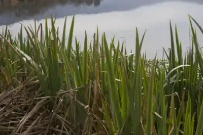 The surface of the Treatment Wetlands are covered with aquatic plants, like Scirpus Acutus as seen in Figure 3, that block light penetration to the water.