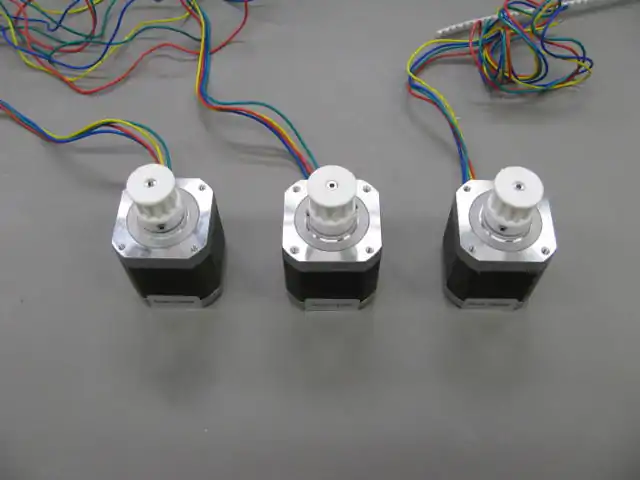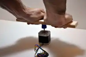 - Place the motors on the table such that their shafts face upward. Using the back of one of the linking boards, push pulleys, set screws down, onto the motor shafts making sure to align one of the set screws with the flat on the motor's shaft. Push the pulley all the way on the shaft until the gap between the pulley and motor housing is a millimeter or less.