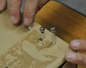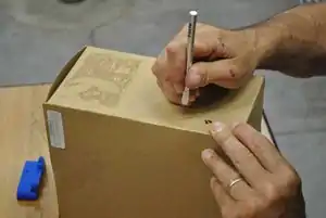 - Prepare a stand for the tie rods by cutting six holes(one for each rod) in a cardboard box or another expendable, flexible but sturdy item that can be used to hold the tie rods in an upright fashion while the epoxy cures.