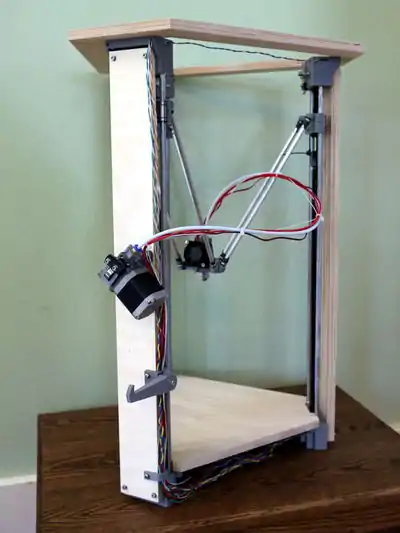 Engage connecting rod with carriage magnets. - Engage the opposite end of the connecting rods with the magnets in the end effector. Note the orientation of the end effector - each pair of connecting rods must be parallel, otherwise the end effector is uncontrollable. If the end effector flops about and isn't rigid on the connecting rods, this requirement hasn't been met.