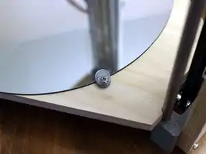 Secure wires at base of vertical board. - The base is just large enough for the 10" mirror. Align the mirror and secure in place with the three printed glass hold downs and #6 x 1/2" sheet metal screws.