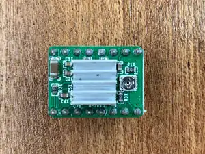 - Remove the adhesive backing paper from the heat sink and affix the heat sink to only the chip on the motor controller boards. Note that the heat sink is NOT touching the soldered pins on the side of the board. There is the potential for a short circuit to occur if it is allowed to touch the pins - avoid this!
