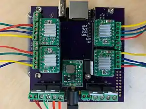 Wire the Motors. - Note the color of the wires on each of the limit switches. Wire the U limit switch to the X/U limit switch screw terminal; V to the Y/V screw terminal, and W to the X/W terminal. There is no polarity concern.
