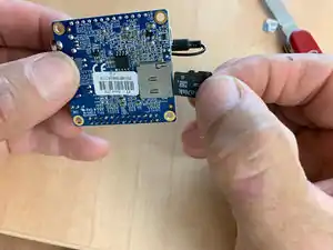 Insert the microSD card. - Insert the pins on the Orange Pi into their mating sockets on the Athena Board. Only one orientation is possible, but it is possible to miss a pin on one end or the other. Assure all pins are in a socket! Damage to the Orange Pi can result if misaligned when power is applied.