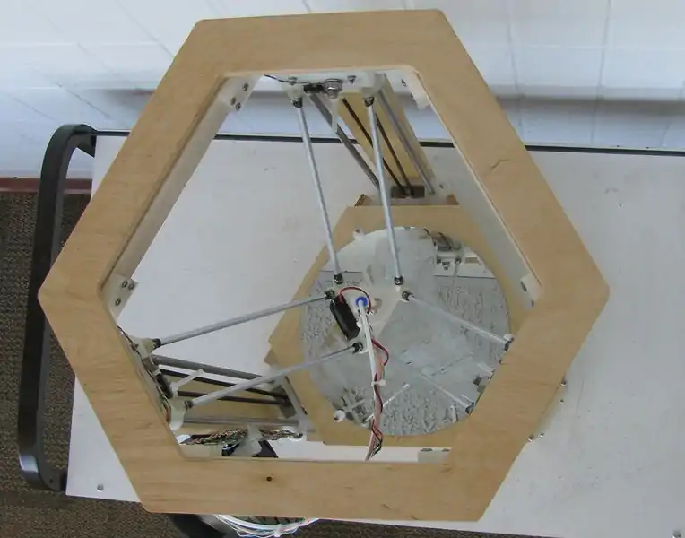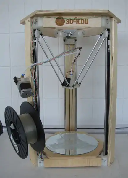 The design borrows heavily from the Most Delta Printer, keeping all of the features that have proven to be effective and adding some new. It has the same build volume but uses metal GT2 pulleys and GT2 timing belt with approximately twice the positioning precision of the MOST Delta. All electronics are tucked away under the build platform and wiring management is improved with the addition of built-in passages and anchor points in idler and motor ends. The design utilizes the improved extruder drive and the MOST Delta's end effector fitted with quick release pneumatic couplers for simplified assembly and easier maintenance. The open top makes for better use of wood and removes a resonator, making the machine quieter and more flexible.