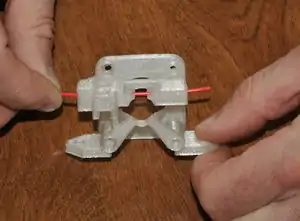 - Check to see if filament passes freely through the filament path. If not, ream it with the 2mm drill bit.