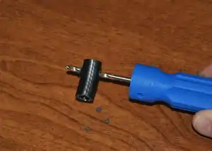Drive gear up against the bearing. - Using the small screwdriver against the knurled portion of the drive gear, rotate the drive gear until the set screw is accessible through the gap.