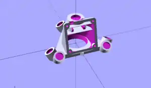 Carriages snap onto LM8UU linear bearings and are attached to a drive belt by a screw passing through the carriage web and a printed fixed belt terminator that is attached to one end of the GT2 drive belt. A pair of high strength neodymium ring magnets serve as sockets for steel ball bearings that are affixed to aluminum connecting rods, forming a low friction, large angle ball joint. The carriages move vertically on tool steel guide rods and engage the limit switches via a screw threaded into the tops of the carriages. | 3 |