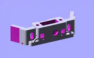 The extruder drive body is attached to a NEMA17 stepper motor, serving as the guide for filament and structural support for the preload idler. The extruder drive is the cold end of the extruder, providing the force required to push the filament into and through the hot end. | 1 |