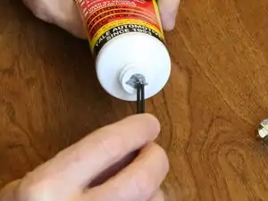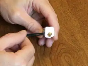- Using the piece of filament, force muffler cement down into the thermistor pocket in the aluminum heater block.