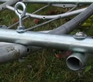 - Attach conduit to pack frame on center using 4 eye-bolt assemblies (1 lock-ring, 2 hex-nuts and washers per). Again, if a flat top is preferred, use the regular bolt assemblies here.