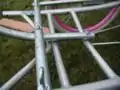 - Weave lateral 3' length of metal conduit through the curved part of the pack frame. Attach each bolt assembly before drilling the next hole to ensure that the holes are in the appropriate places.