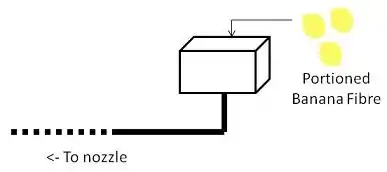 3) Labourer #2 portions enough banana fibre for 1 pad and inserts it into the chute at end of blower. It should be noticed that the subprocess 'layering' has been ignored as it is unnecessary.